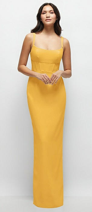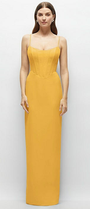 Corset-Style Crepe Column Maxi Dress with Adjustable Straps in NYC yellow