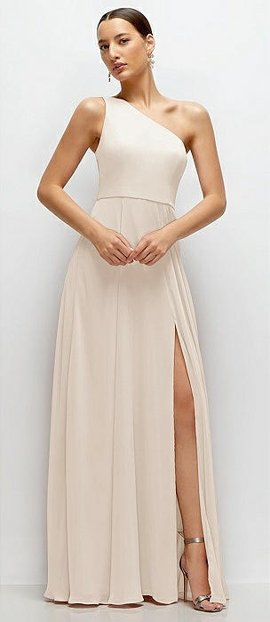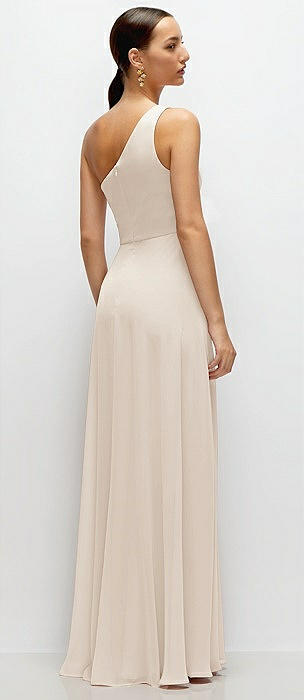 Chiffon One-Shoulder Maxi Dress with Circle Skirt in oat
