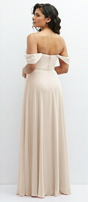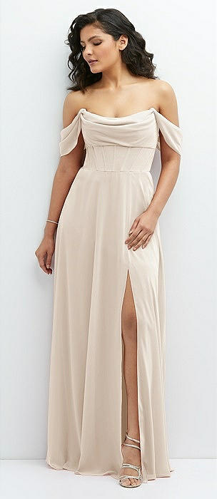 Chiffon Corset Maxi Dress with Removable Off-the-Shoulder Swags in oat