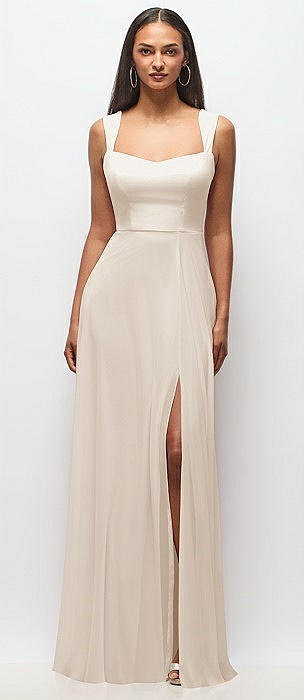 Square Neck Chiffon Maxi Dress with Circle Skirt in oat