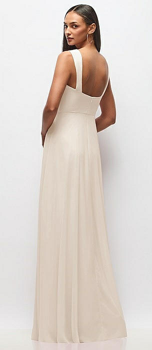 Plunge Neckline Bow Shoulder Empire Waist Chiffon Maxi Dress in oat