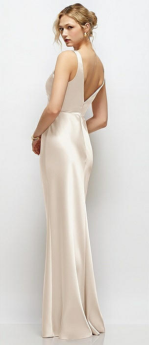 Sleeveless V-Neck Stretch Satin Bias Slip Maxi Dress in oat