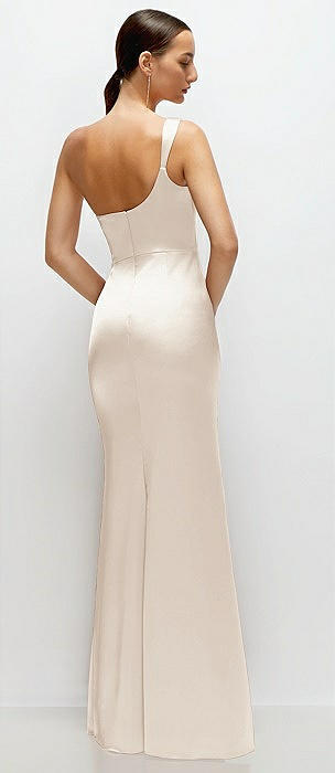 One-Shoulder Crepe Trumpet Gown with Front Slit in oat