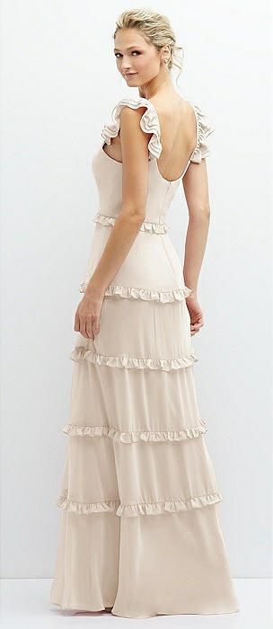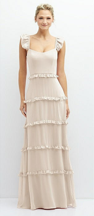 Tiered Chiffon Maxi A-line Dress with Convertible Ruffle Straps in oat