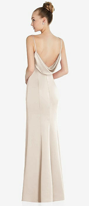 Cowl-Neck Open Tie-Back Stretch Satin Mermaid Dress with Slight Train in oat