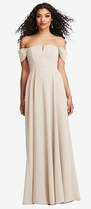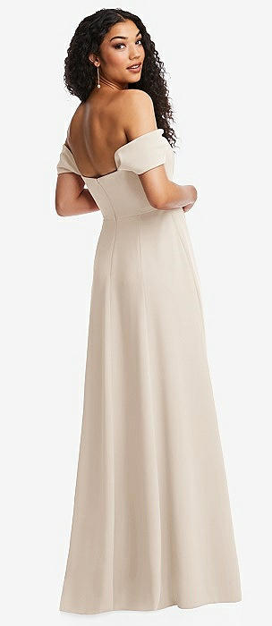 Off-the-Shoulder Pleated Cap Sleeve A-line Maxi Dress in oat