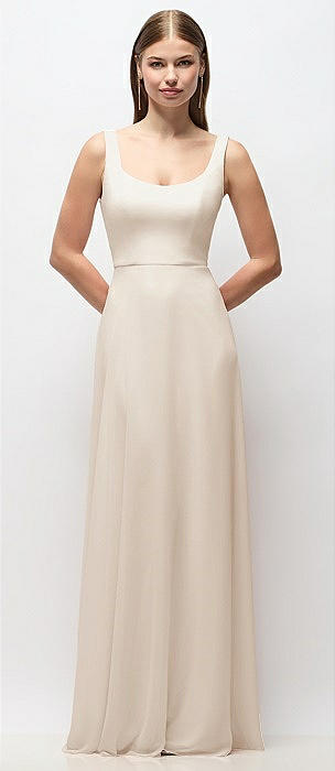 Scoop Neck Tank Strap Chiffon Maxi Dress in oat