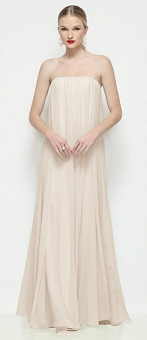 Strapless Shirred Chiffon Trapeze Maxi Dress in oat