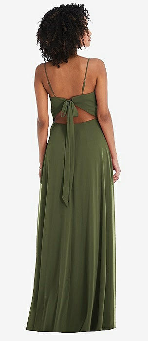 Low Tie-Back Maxi Dress with Adjustable Skinny Straps in olive green
