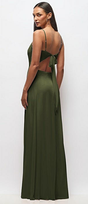 Low Tie-Back Maxi Dress with Adjustable Skinny Straps in olive green