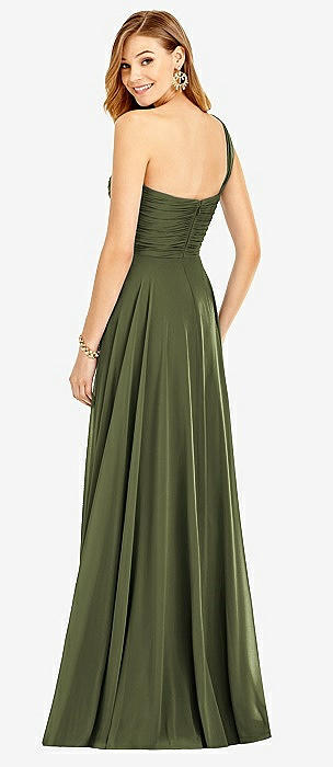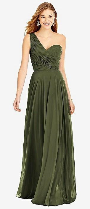 One-Shoulder Draped Chiffon Maxi Dress - Dani in olive green