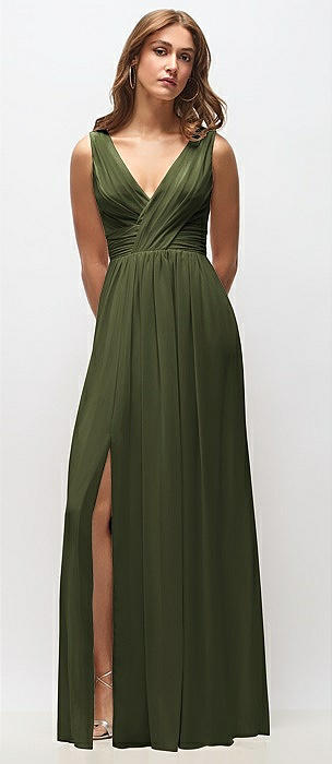 Olive Green Draped Bridesmaid Dresses