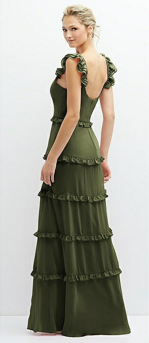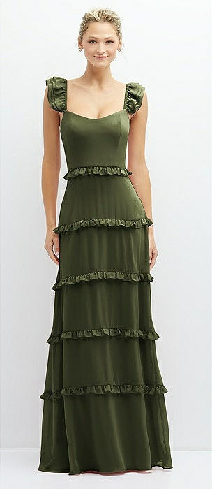 Tiered Chiffon Maxi A-line Dress with Convertible Ruffle Straps in olive green
