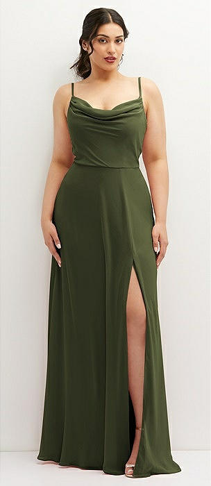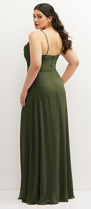 Soft Cowl-Neck A-Line Maxi Dress with Adjustable Straps in olive green