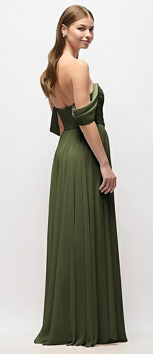 Chiffon Corset Maxi Dress with Removable Off-the-Shoulder Swags in olive green