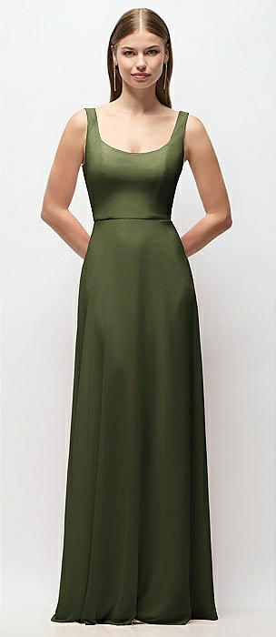 Scoop Neck Tank Strap Chiffon Maxi Dress in olive green