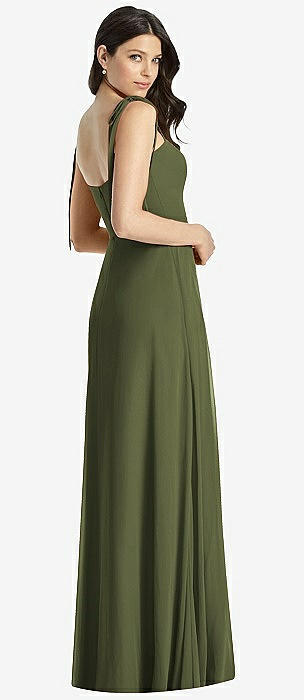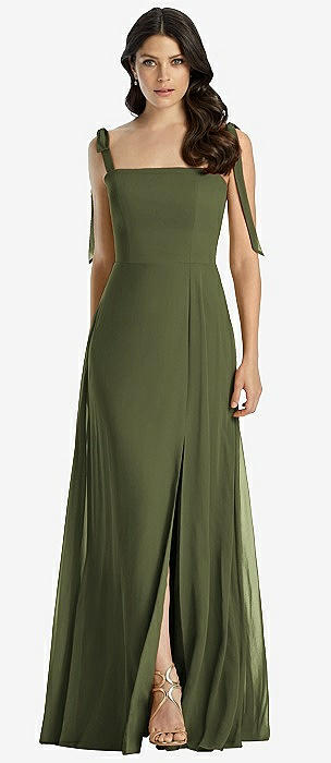 Tie-Shoulder Chiffon Maxi Dress with Front Slit in olive green