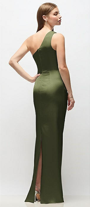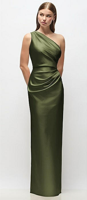 Shirred One-Shoulder Satin Trumpet Dress - Maddie in olive green