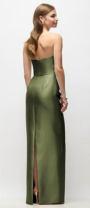 Strapless Notch Satin Gown with Pockets in olive green