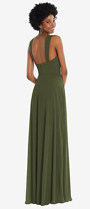 Tie-Back Cutout Maxi Dress with Front Slit in olive green