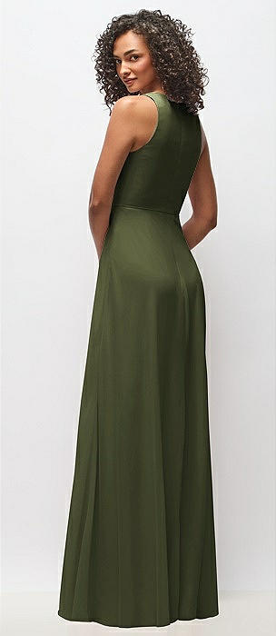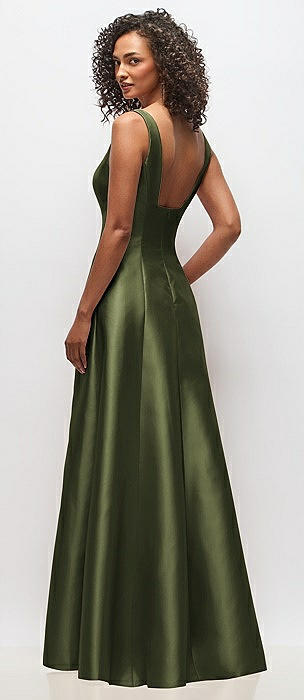 Sleeveless Square-Neck Princess Line Gown with Pockets in olive green