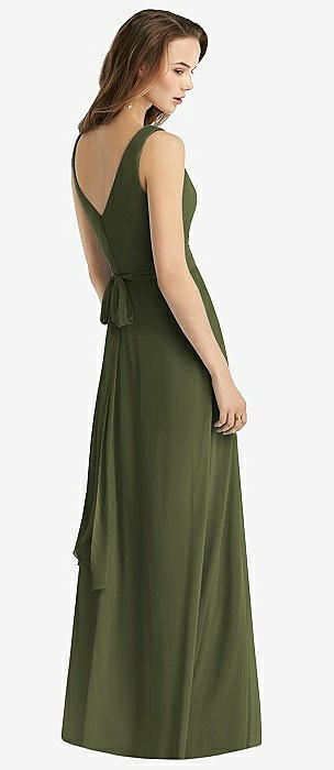 Sleeveless V-Neck Chiffon Wrap Dress in olive green