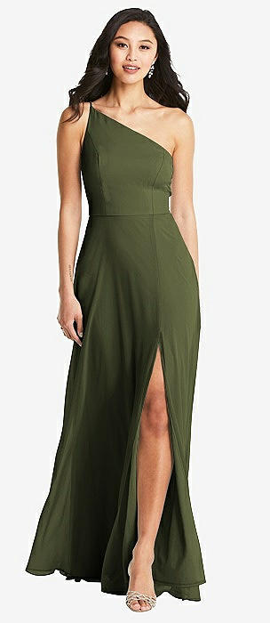 Twist Cuff One-Shoulder Princess Line Trumpet Gown in olive green