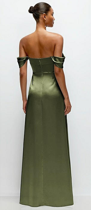 Off-the-Shoulder Corset Stretch Satin Mermaid Dress with Slight Train in olive green