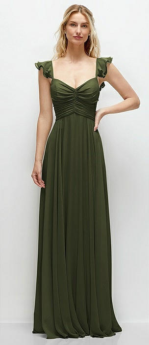Tiered Chiffon Maxi A-line Dress with Convertible Ruffle Straps in olive green