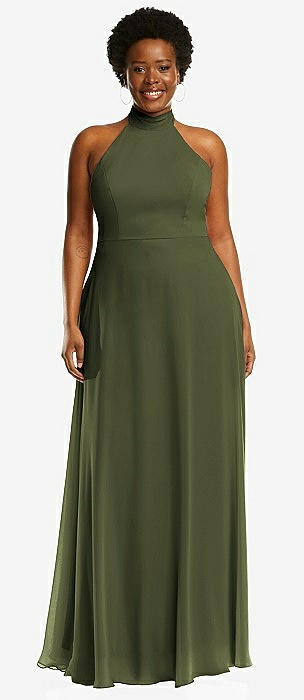 Draped Twist Halter Tie-Back Trumpet Gown in olive green