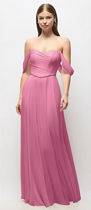 Chiffon Corset Maxi Dress with Removable Off-the-Shoulder Swags in orchid pink
