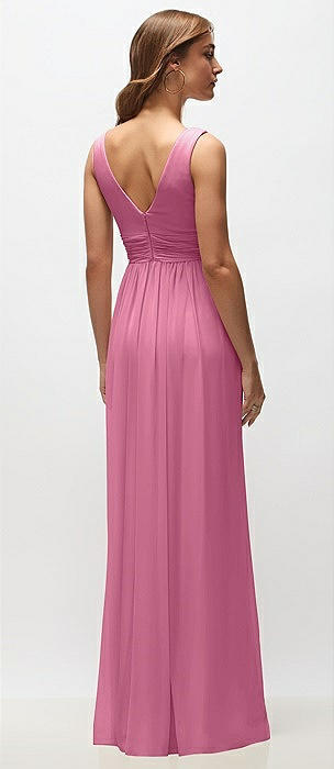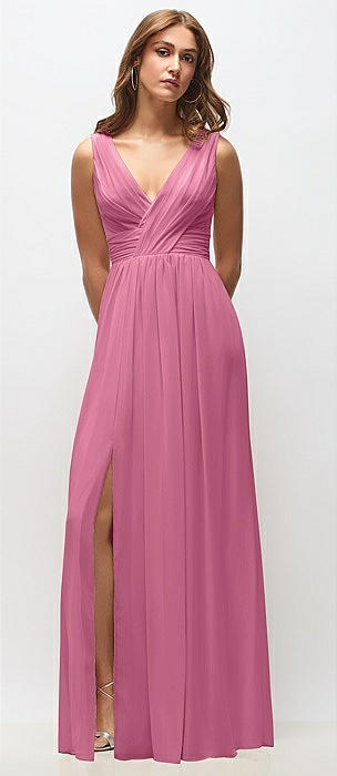 Sleeveless Draped Chiffon Maxi Dress with Front Slit