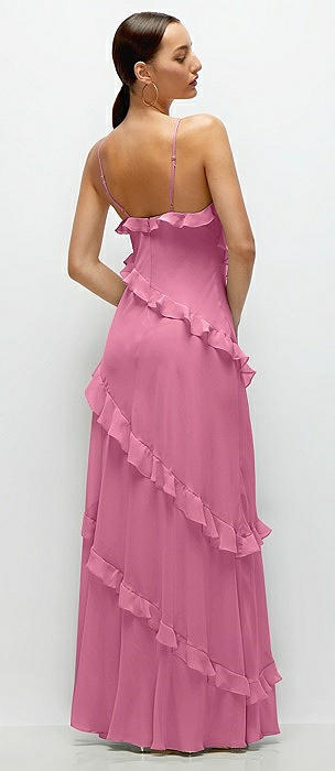 Bustier-Style Chiffon Tiered Ruffle Maxi Dress with Adjustable Straps in orchid pink
