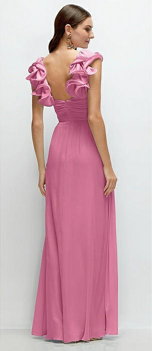 Dramatic Ruffle Edge Strap Chiffon Maxi Dress in orchid pink