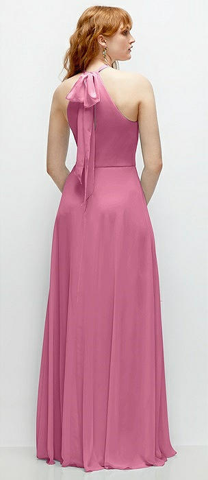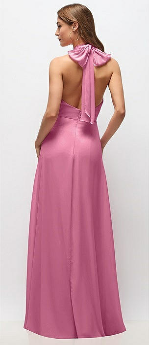 Shirred Halter Chiffon Maxi Dress with Back Sash-Tie Closure in orchid pink