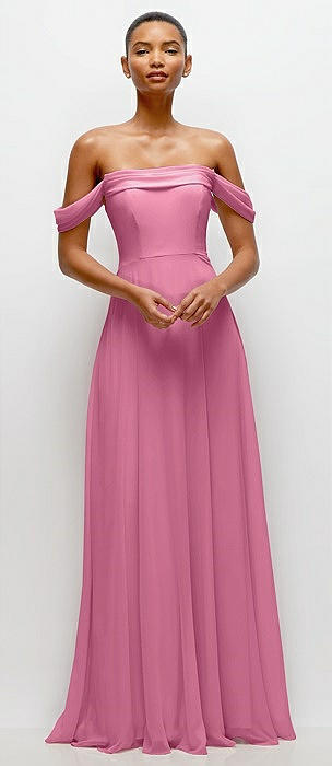 Off-the-Shoulder Draped Chiffon Maxi Dress in orchid pink