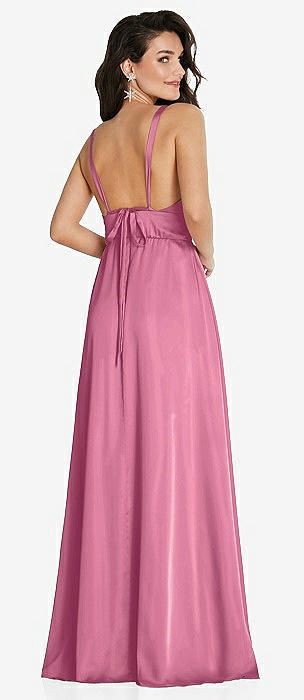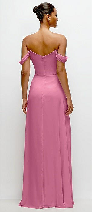 Bow-Shoulder V-Back Chiffon Gown with Front Slit in orchid pink