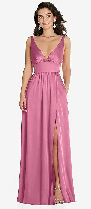 Deep V-Neck Shirred Skirt Maxi Dress with Convertible Straps in orchid pink