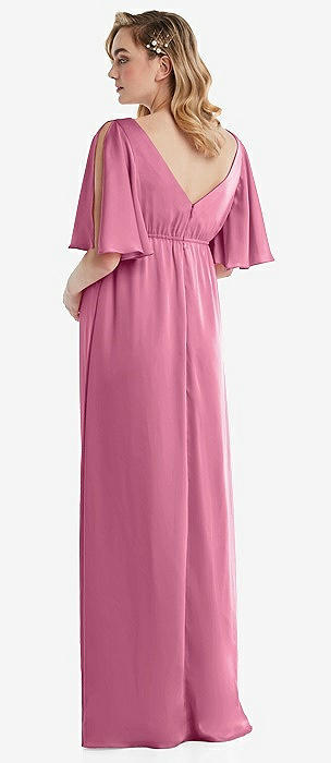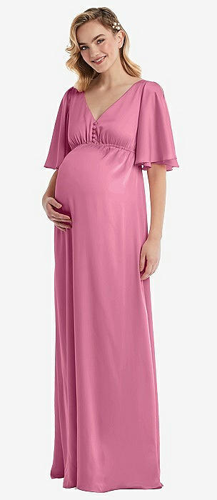 Flutter Bell Sleeve Empire Maternity Dress in orchid pink