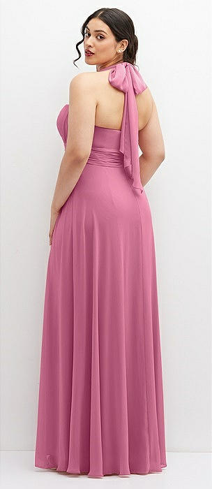 Chiffon Convertible Maxi Dress with Multi-Way Tie Straps in orchid pink