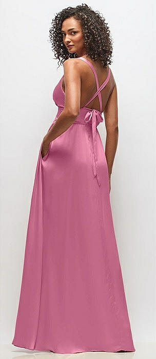 Draped Satin Grecian Column Gown with Convertible Straps in orchid pink