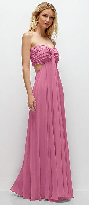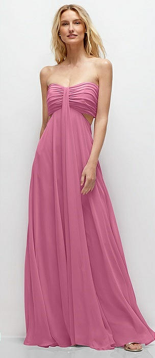 Strapless Empire Waist Cutout Maxi Dress with Covered Button Detail in orchid pink