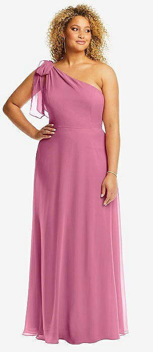 Chiffon One-Shoulder Maxi Dress with Circle Skirt in orchid pink