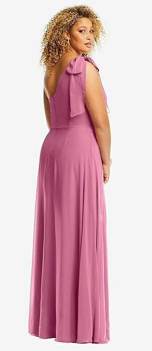 Draped One-Shoulder Maxi Dress with Scarf Bow in orchid pink