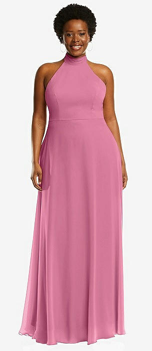 Shirred Halter Chiffon Maxi Dress with Back Sash-Tie Closure in orchid pink