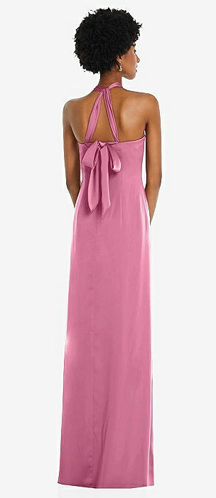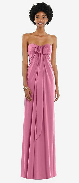 Draped Satin Grecian Column Gown with Convertible Straps in orchid pink
