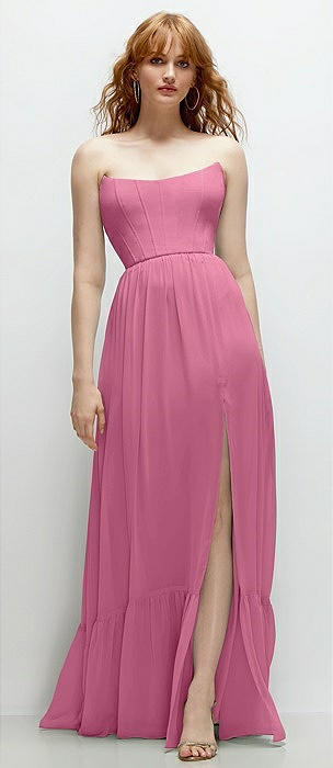 Strapless Cat-Eye Corset Maxi Dress with Ruffle Hem A-Line Skirt in orchid pink