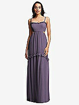 Ruffle-Trimmed Cutout Tie-Back Maxi Dress with Tiered Skirt in Blush
