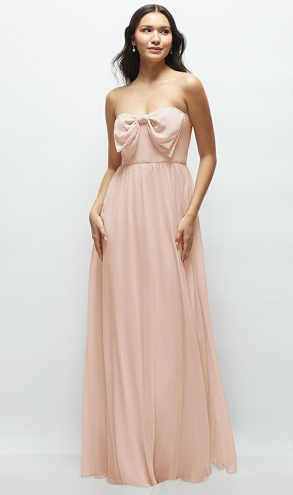 Strapless Chiffon Maxi Dress with Oversized Bow Bodice in Cameo