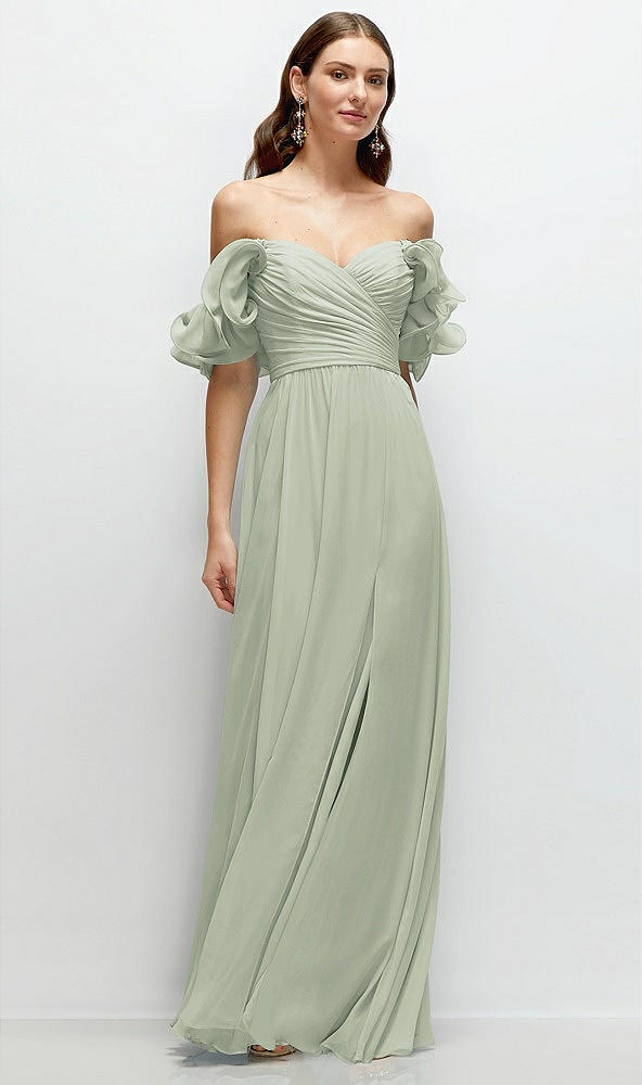 Dramatic Ruffle Edge Strap Chiffon Maxi Dress in Celadon